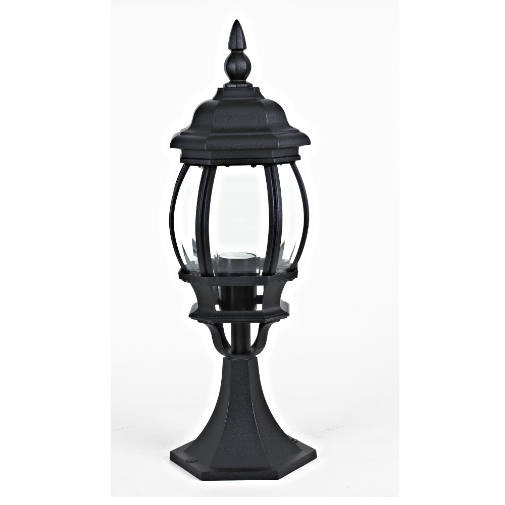 Baliza de exterior Góndola negro de diseño clásico ideal para jardines, caminos o entradas. Fabricada en resistente aluminio inyectado con acabado negro, esta luminaria cuenta con un difusor de cristal transparente que permite una óptima distribución de la luz, resaltando el entorno con un estilo elegante y atemporal. Sus dimensiones de 52 cm de altura y 20 cm de diámetro la hacen perfecta para delimitar senderos o zonas de paso sin ocupar mucho espacio visual. Incorpora un casquillo E27 (bombilla no incluida), brindando libertad para elegir el tipo de iluminación más adecuada. Diseñada para resistir condiciones exteriores, es una solución práctica y decorativa para iluminación de exteriores.