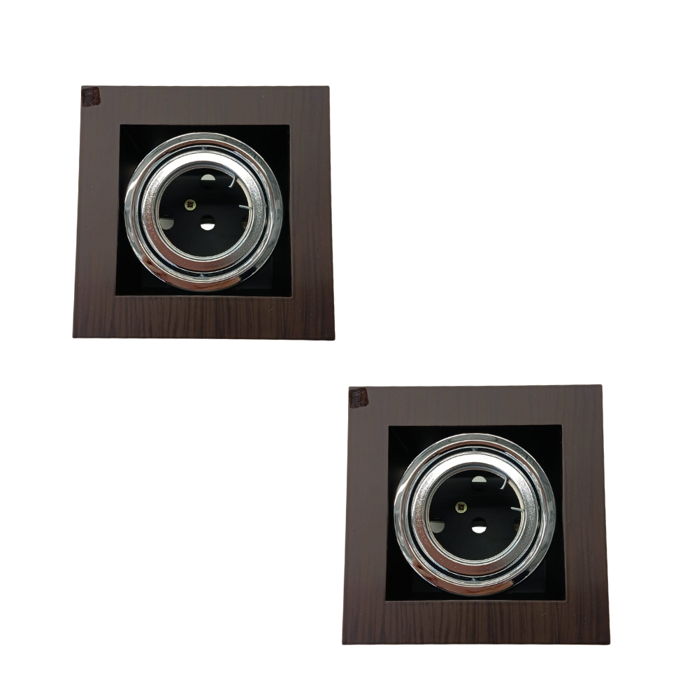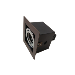 Empotrable para techo.Portalámparas: GU10 incluido. Acabado: wengué/negroMaterial: aluminio y aceroGrado de protección: IP20 – Clase II Orientable: hasta 30° Dimensiones exteriores: 110 × 110 mm Corte en techo: 98 × 98 mm Profundidad mínima de empotramiento: 111 mmMontaje: techo (interior)