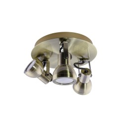 Plafón 3L de la colección Heli. Su estructura es de aluminio en color cuero (oro envejecido). Sus focos son orientables para poder dirigir la luz hacia donde necesitemos. Heli es compatible con bombillas led (no incluidas). Fácil sustitución de bombilla. Gracias a su diseño se puede instalar en habitaciones de diferentes estilos. Ideal para utilizar en cocinas, dormitorios, vestidores Disponible en diferentes formatos y acabados.