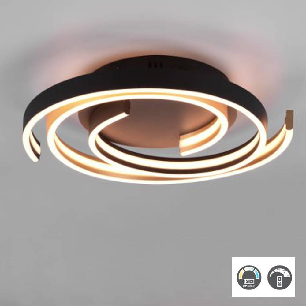 Caya es un plafón con un diseño original que parece estar en movimiento. Su estructura es de aluminio en acabado negro y bronce mate. Tiene un consumo led de 58w (6800lm). En su base lleva integrado un interruptor para poder regular entre sus 3 intensidades. Con un conmutador y por medio de la función DIP SWICHT podremos cambiar la temperatura de color (2300k, 3000k y 4000k). Es de fácil instalación ideal para la iluminación de salones o dormitorios. Caya está disponible en acabado aluminio cepillado.