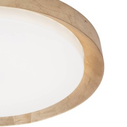 Elegante plafón de techo modelo Fiyi II. Está compuesto por metal y resina en acabado pan de oro. Su difusor es de acrílico en color blanco. Lleva integrado led de 50w consumo. Incluye mando a distancia y desde él podremos elegir la tonalidad que deseemos desde 3000k (luz cálida) hasta 6500k (luz fría). También podremos regular la intensidad de la luz. Su diseño nos permite utilizarlo para la iluminación de cualquier estancia como por ejemplo un salón, un dormitorio e incluso una cocina.