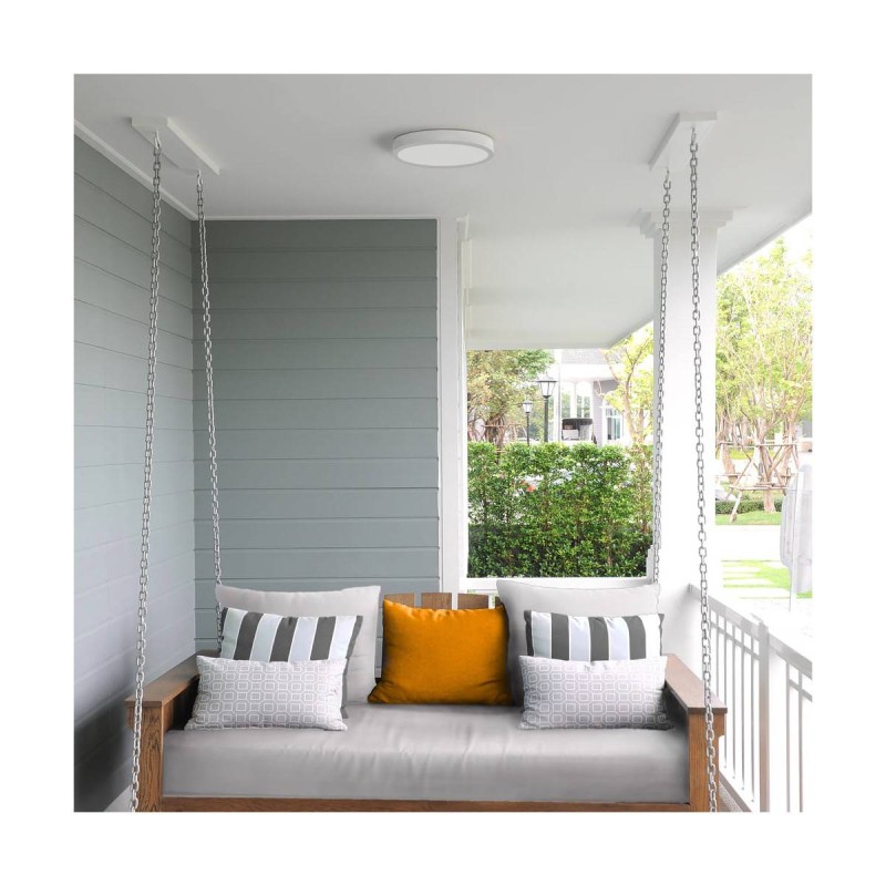 Plafón de superficie Gelys. Su estructura es de aluminio en blanco y difusor en acrílico blanco. Lleva integrada una placa led de 18w consumo (1620lm) en tonalidad 4000k (luz neutra). Fácil de instalar en techo o en pared. Gelys es ideal para instalar es espacios húmedos como por ejemplo en un porche, balcón e incluso en baños y aseos. Disponible en una potencia y tamaño superior o en acabado gris antracita.