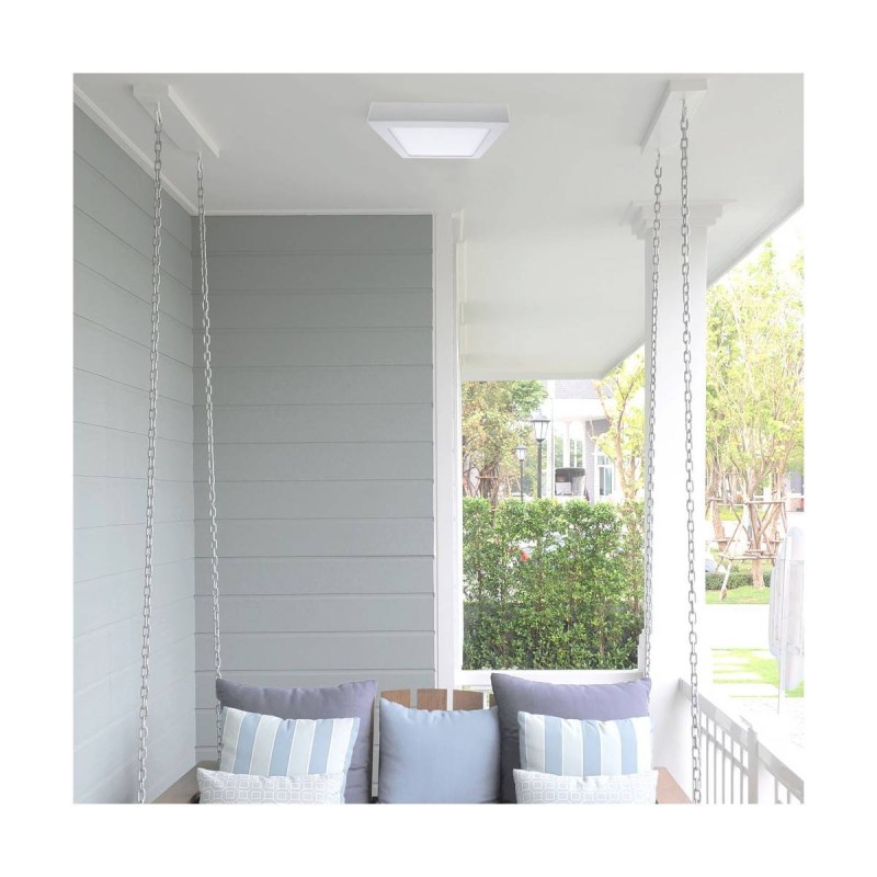 Plafón de superficie Gelys. Su estructura es de aluminio en blanco y difusor en acrílico blanco. Lleva integrada una placa led de 30w consumo (2700lm) en tonalidad 4000k (luz neutra). Fácil de instalar en techo o en pared. Gelys es ideal para instalar es espacios húmedos como por ejemplo en un porche, balcón e incluso en baños y aseos. Disponible en una potencia y tamaño inferior o en acabado gris antracita.