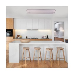 Sencillo plafón de techo modelo Cryn 6000K. Su estructura es de metal blanco y su difusor está compuesto por acrílico blanco. Lleva integrada una placa led de 99w consumo 8400lm. Su tonalidad es de luz fría 6000k. Tiene un diseño moderno y podemos utilizarlo en diferentes estancias como por ejemplo una cocina o una oficina. Disponible en tonalidad 4000k (neutra) y en versión Smart con mando a distancia, APP y 3 tonalidades de luz.