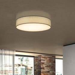 El plafón Paco tiene un diseño moderno y sencillo. Su estructura es de metal níquel. Su tulipa con forma cilíndrica es de tela en acabado gris. Difusor de acrílico blanco. Lleva integrada una placa led de 60w consumo (2800lm). Además el plafón Paco incluye mando a distancia, y desde él podremos cambiar la tonalidad de la luz de cálida 3000k hasta llegar a fría 6000k, regular la intensidad de ella, memoria de encendido etc Paco es ideal para utilizar en estancias como por ejemplo un salón o un dormitorio.La colección Paco es muy amplia y está disponible en distintos formatos de lámparas.