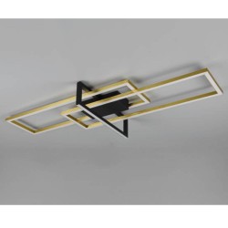 El plafón Salinas Bronce tiene un diseño moderno de líneas rectas perfecto para instalar en ambientes de estilo moderno, como por ejemplo en un salón, un dormitorio e incluso se puede utilizar para iluminar una cocina. Su estructura es de metal en acabado bronce (oro envejecido y negro . Lleva integrado led de 34w consumo (3900lm). La tonalidad de su luz es 3000k (luz cálida). Salinas tiene 3 intensidades de luminosidad que podremos elegir con tan solo pulsar nuestro interruptor de casa. Disponible en acabado níquel , blanco o en acabado negro.