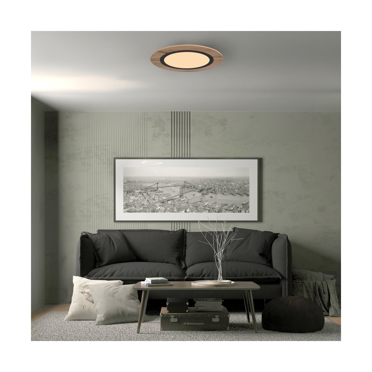 El plafón modelo Hasbi Smart 20w es una opción elegante y moderna para iluminar cualquier espacio de tu hogar. Con una estructura que combina metal y madera en un acabado natural, junto con un difusor blanco, este plafón aporta un toque contemporáneo a la decoración de tu hogar. Con un consumo de energía de 20 vatios y una potencia lumínica de 1200 lúmenes gracias a su iluminación LED, este plafón proporciona una iluminación eficiente y brillante. Su mando a distancia incluido te permite controlar diversas funciones, como seleccionar la tonalidad de luz que prefieras entre cálida (3000k), neutra (4000k) y fría (6000k), así como ajustar la intensidad de la luz según tus necesidades. Además, el plafón Hasbi Smart 20w cuenta con una función de luz de posición y memoria de encendido, lo que te permite mantener tus ajustes preferidos cada vez que enciendas la luz. La tecnología Smart y Bluetooth integrada te brinda la conveniencia de controlar la iluminación desde tu smartphone o tablet, lo que te permite ajustar la luz según el ambiente y tus preferencias con solo unos toques en la pantalla. Disponible en otros formatos para adaptarse a diferentes necesidades de iluminación, el plafón Hasbi Smart 20w es una opción versátil y práctica para iluminar salas de estar, dormitorios, cocinas u otros espacios de tu hogar. Con su diseño elegante, funcionalidades avanzadas y tecnología inteligente, este plafón ofrece una iluminación personalizable y conveniente para mejorar tu experiencia en el hogar.