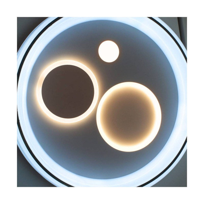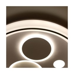 Original plafón de techo modelo Rus. Su estructura es de metal blanco y su difusor está compuesto por Pvc y acrílico blanco. Lleva integrada una placa led de 85w consumo 7300lm. Rus incluye mando a distancia y desde él podremos elegir entre sus tres tonos de luz 3000k (luz cálida) 4000k (luz neutra) y 6000k (luz fría). También podemos regular la intensidad de la luz, cuenta con función modo noche y con memoria de encendido. Descargando su APP podremos ejecutar estas funciones desde nuestro dispositivo móvil. Tiene un diseño moderno y podemos utilizarlo en diferentes estancias como por ejemplo un salón o un dormitorio. Disponible en formatos similares.