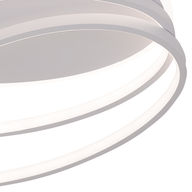 El plafón de techo 3D LED 60W destaca por su diseño contemporáneo con efecto tridimensional, pensado para aportar dinamismo y elegancia a cualquier estancia. Su estructura de anillos superpuestos en acabado blanco genera una sensación de profundidad y movimiento que transforma el techo en un elemento decorativo protagonista. Fabricado en metal de alta calidad, integra la iluminación LED de forma continua en sus curvas, creando una luz homogénea, suave y envolvente, perfecta para salones, dormitorios o espacios modernos. Cuenta con una potencia de 60W LED, proporcionando una iluminación potente y eficiente con bajo consumo energético. Gracias a su sistema 3CCT, permite elegir entre diferentes temperaturas de color (cálida, neutra o fría), adaptándose a cada momento del día y tipo de ambiente. Además, incorpora control inteligente mediante APP y mando a distancia, permitiendo regular la intensidad y el tono de luz con total comodidad.Compatible con control inteligente mediante app, puedes ampliar sus funciones descargando Lamp Smart Pro a través del código QR incluido, permitiendo gestionar la iluminación desde tu móvil. Su diseño moderno y minimalista, junto con su efecto visual 3D, lo convierten en una opción ideal para quienes buscan una luminaria funcional sin renunciar al estilo.