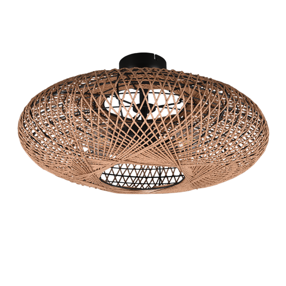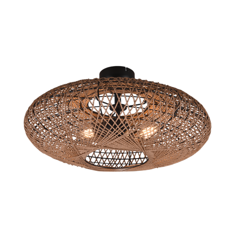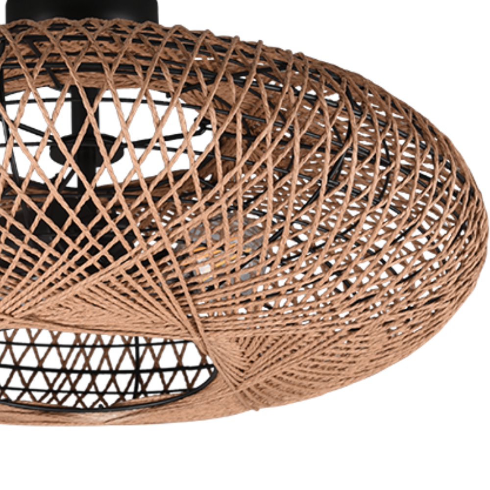 Plafón de techo HEDDA TRIO Lighting con pantalla de sisal natural y estructura negro mate. Funciona con 2 bombillas E27 ( no incluidas). Diseño natural ideal para salón, dormitorio o comedor.
