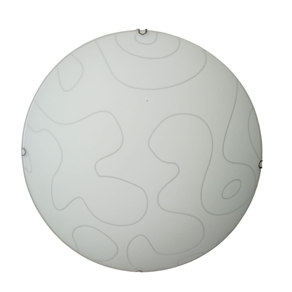 Aporta un toque suave y decorativo con el plafón New york. Su difusor de cristal mate con motivo de rayas reparte la luz de forma homogénea y crea un ambiente cálido en salones, pasillos o dormitorios. Diseño redondo con tres presillas metálicas para una sujeción segura.Difusor de cristal opal con estampado de plumas. Luz confortable y uniforme, ideal para interior. Diseño compacto que encaja en techos bajos. Compatible con bombillas LED (no incluidas) para máximo ahorro. Medidas Diámetro: 30 cm Altura: 13 cm Materiales y acabado .Difusor: cristal mate decorado. Fijación: presillas metálicas (acabado niquelado) Uso recomendado: dormitorios, pasillos, entradas, salones y zonas comunes.