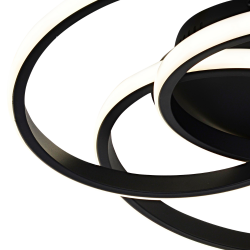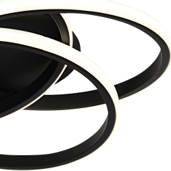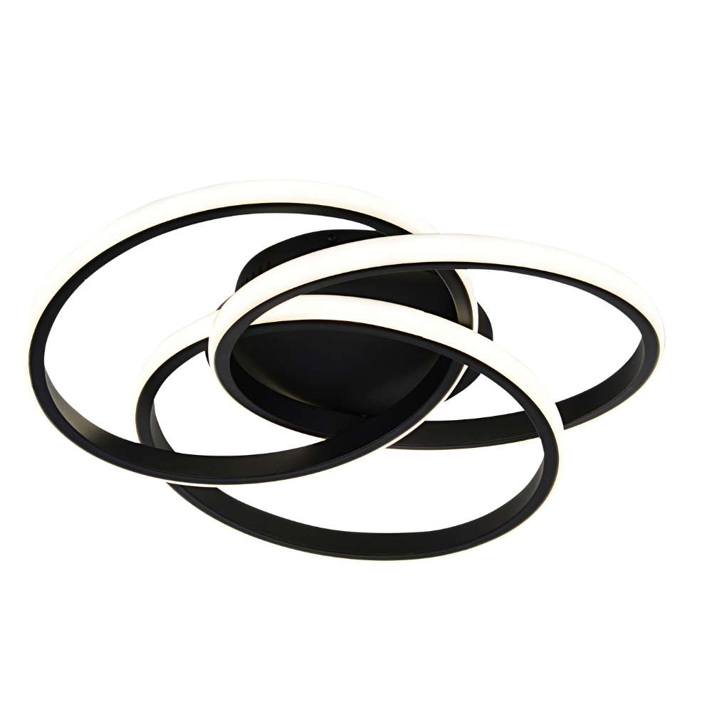 Plafón OLIMPO LED 50W negro con APP, mando y 3CCT. Diseño moderno con aros entrelazados, potente y decorativo.
