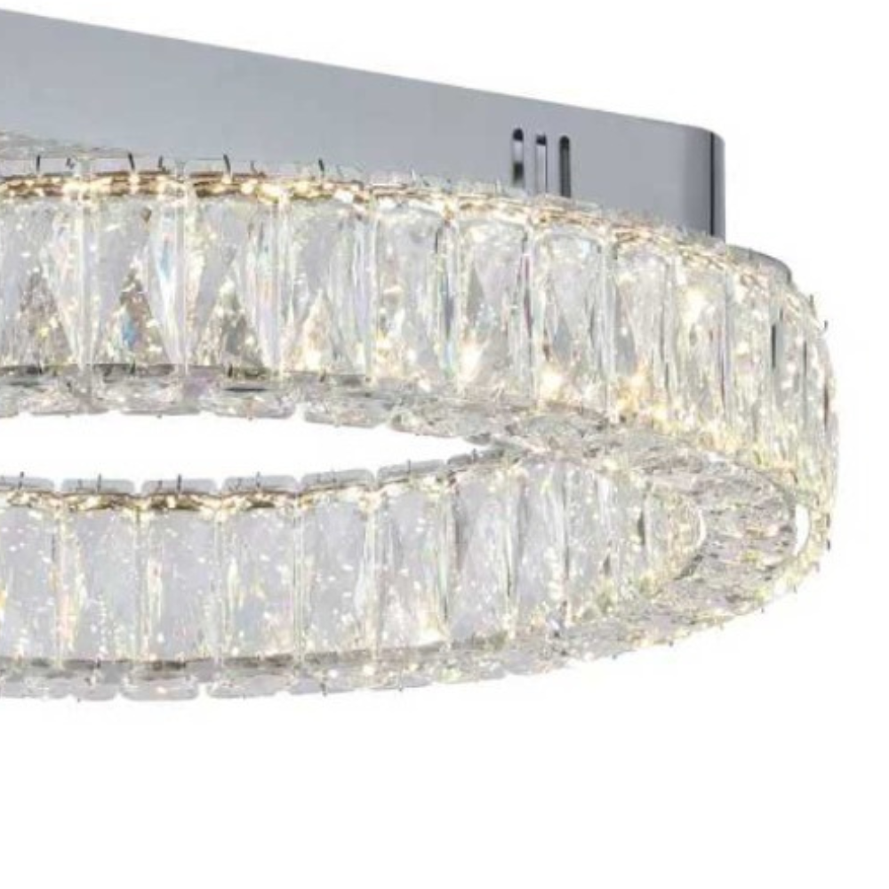 Plafón de techo Vivi LED 121W 3CCT en acabado cromo. Diseño moderno con efecto cristal y diámetro de 50 cm. Iluminación potente, regulable en temperatura y elegante.