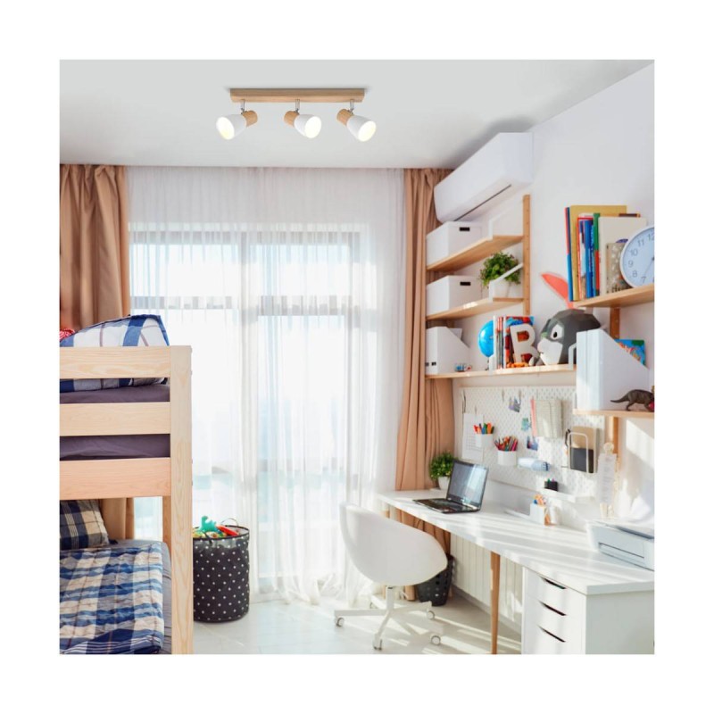 Lan es una colección de lámparas de acabado moderno que nos permite utilizarlas en ambientes de estilo nórdico y moderno. La regleta 3L Lan esta realizada en metal acabado blanco y madera en acabado natural. Es compatible con bombillas led (no incluidas). Sus focos son orientables, lo que nos permite orientar la luz hacia donde necesitemos. Gracias a su diseño podemos instalarla en el techo en pared. Ideal para iluminar dormitorios, pasillos, vestidores, cocinas