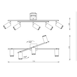 La colección Marley es muy amplia ya que tiene diferentes versiones de lámparas y en diferentes acabados. La regleta Marley 5L Negro forma parte de ella y es una regleta muy versátil ya que se puede utilizar para iluminar diferentes estancias como por ejemplo un salón, un dormitorio e incluso una cocina. Su estructura es de metal en acabado negro con detalles en cromado. Sus focos son orientables lo que nos permite orientar la luz hacia donde deseemos. Marley compatible con bombilla led (no incluidas) y es de fácil instalación.