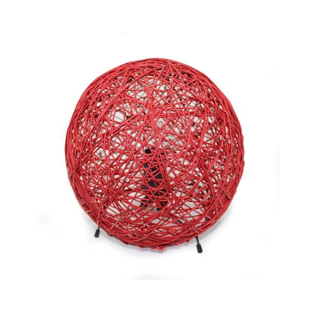 Lámpara de sobremesa con forma de esfera formada por metal color negro y ratán en acabado rojo. Es compatible con bombillas led (no incluida). Sobremesa ideal para utilizar en dormitorios o para la iluminación indirecta y de ambiente en una estancia.