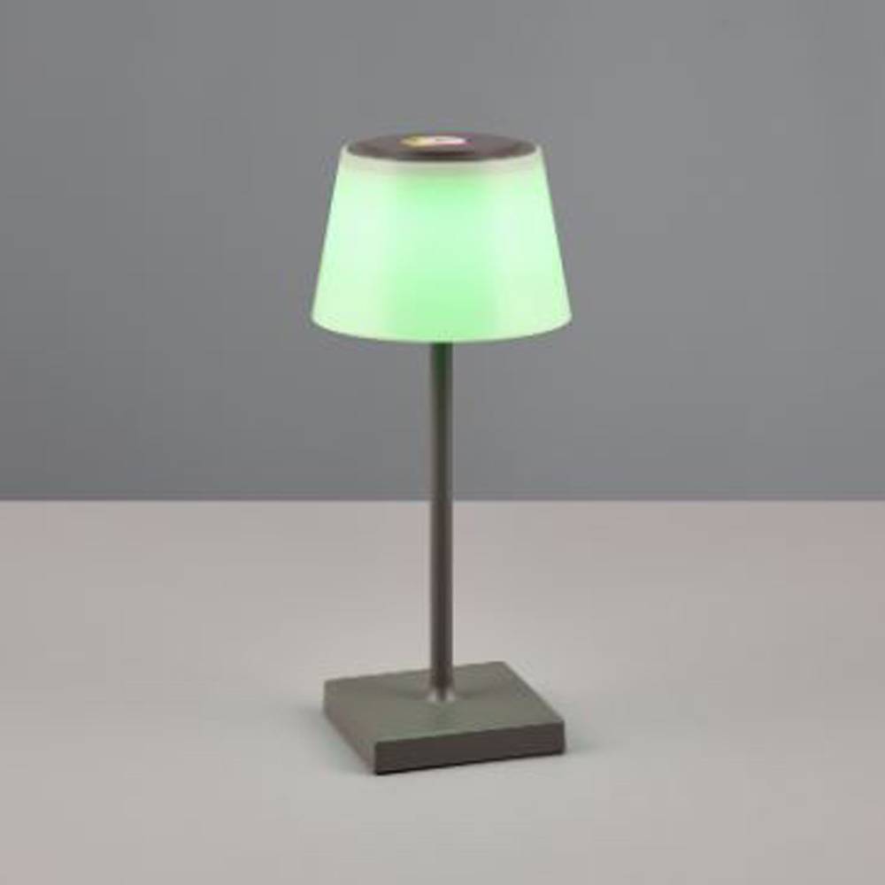 Sobremesa modelo Sánchez. Esta sobremesa tiene un diseño clásico pero en tamaño reducido. Está realizada en plástico en color antracita. Tiene un nivel de protección IP44 ideal para utilizar en exteriores. Su luz es led y tiene un consumo de 2.5w (450lm). Su tonalidad es ajustable en etapas desde 2700k (luz cálida) 4000k (luz neutra) y 5000k (luz fría).Sistema RGB integrado. Lleva integrado un regulador táctil de 3 intensidades. La sobremesa Sánchez es portátil y podemos llevarla a donde necesitemos sin necesidad de estar conectada a corriente. Incluye puerto USB para su carga. Disponible en acabado gris. Ideal para utilizar en interiores o exteriores.