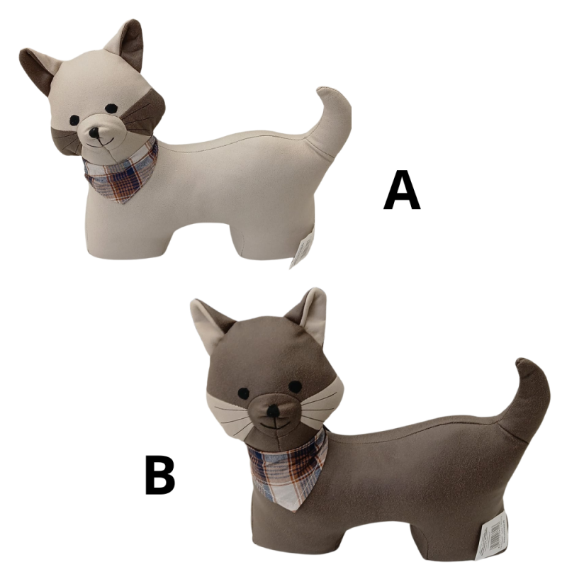 Mantén tus puertas abiertas con estilo. Este sujeta-puertas con forma de gato está confeccionado en tejido suave y lleva pañuelo de cuadros al cuello. El interior incorpora lastre de arena para aportar peso y estabilidad sin dañar el suelo. Medida: 29x10x27cm (precio unidad).