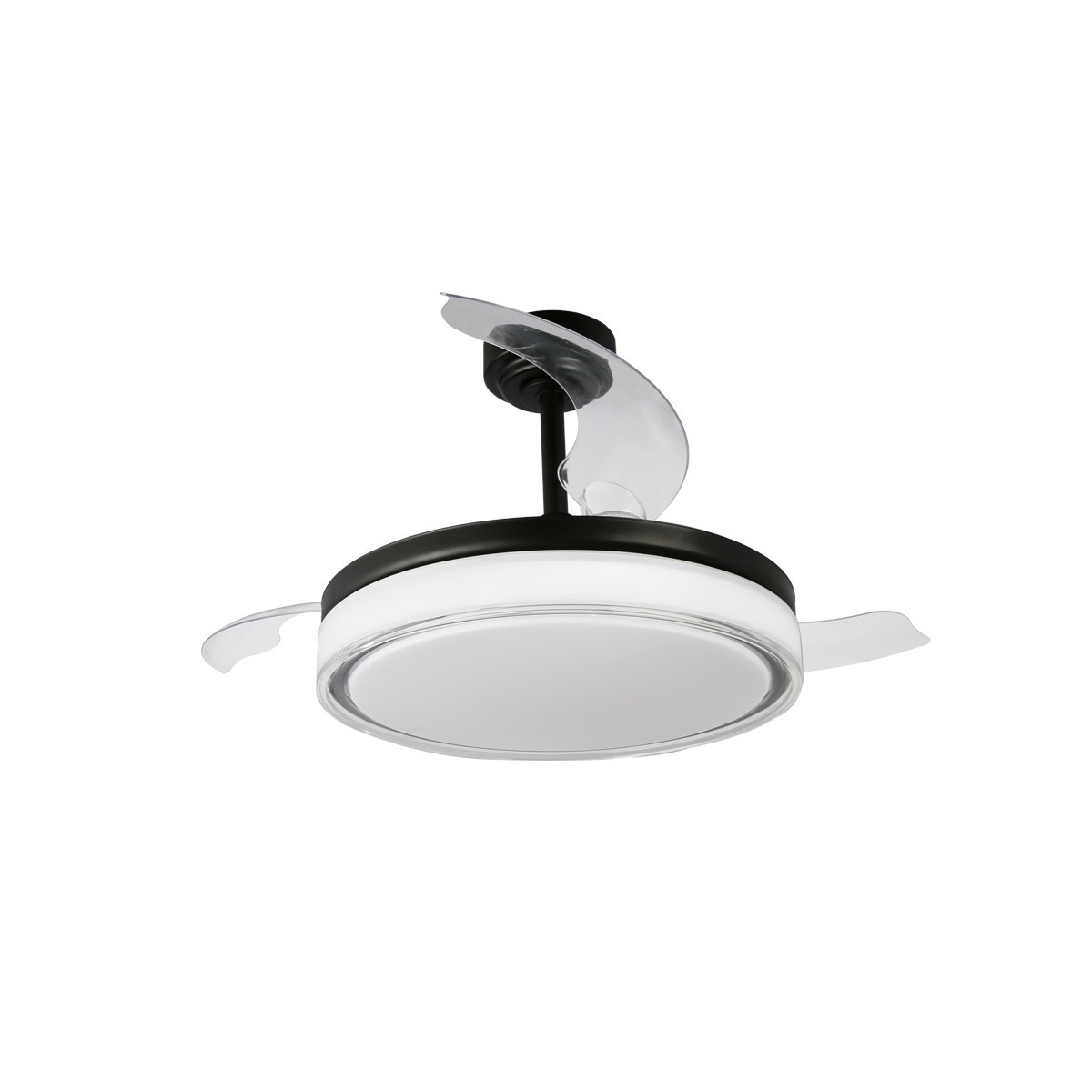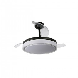 Ventilador Aneto V de aspas retráctiles. Su estructura es de metal en acabado negro con difusor en PMMA opal. Su motor es DC. Tiene un consumo led 72w y 6 velocidades. Incluye 3 tonos de luz, regulables en intensidad y mando a distancia con diferentes funciones…