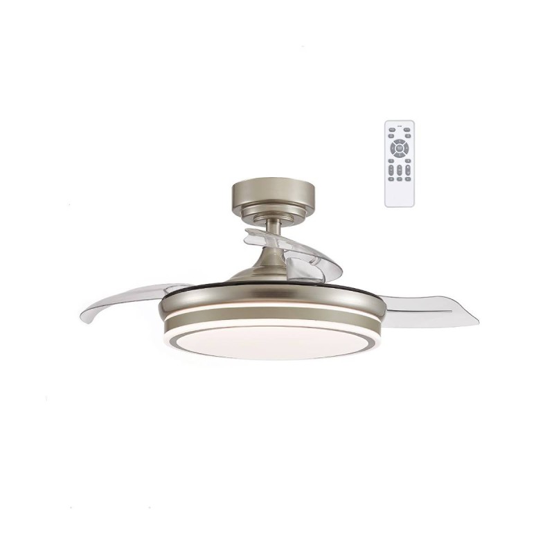 Ventilador de techo Ice níquel LED 35w 3CCT acabado níquel estilo moderno aspas plegables motor DC 92cm Ø