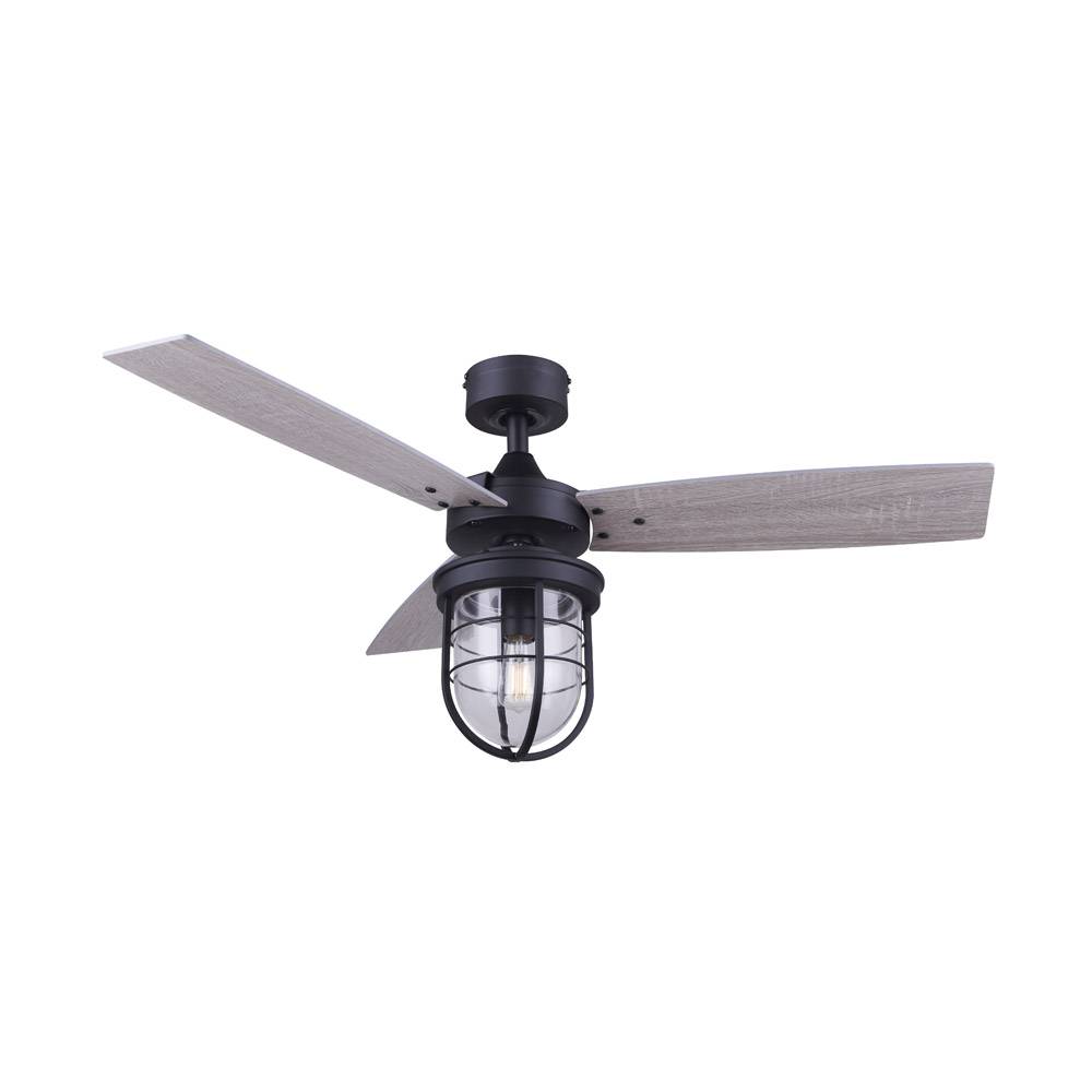 El ventilador de techo K2 tiene un estilo náutico diferente a los demás. Tiene una estructura de metal con acabado en negro mate. Sus aspas de madera tienen un acabado con vetas en color madera oscura. Cuenta con una tulipa de cristal transparente y una rejilla de metal en negro mate. Es perfecto para utilizar en estancias de estilo náutico y rústico.