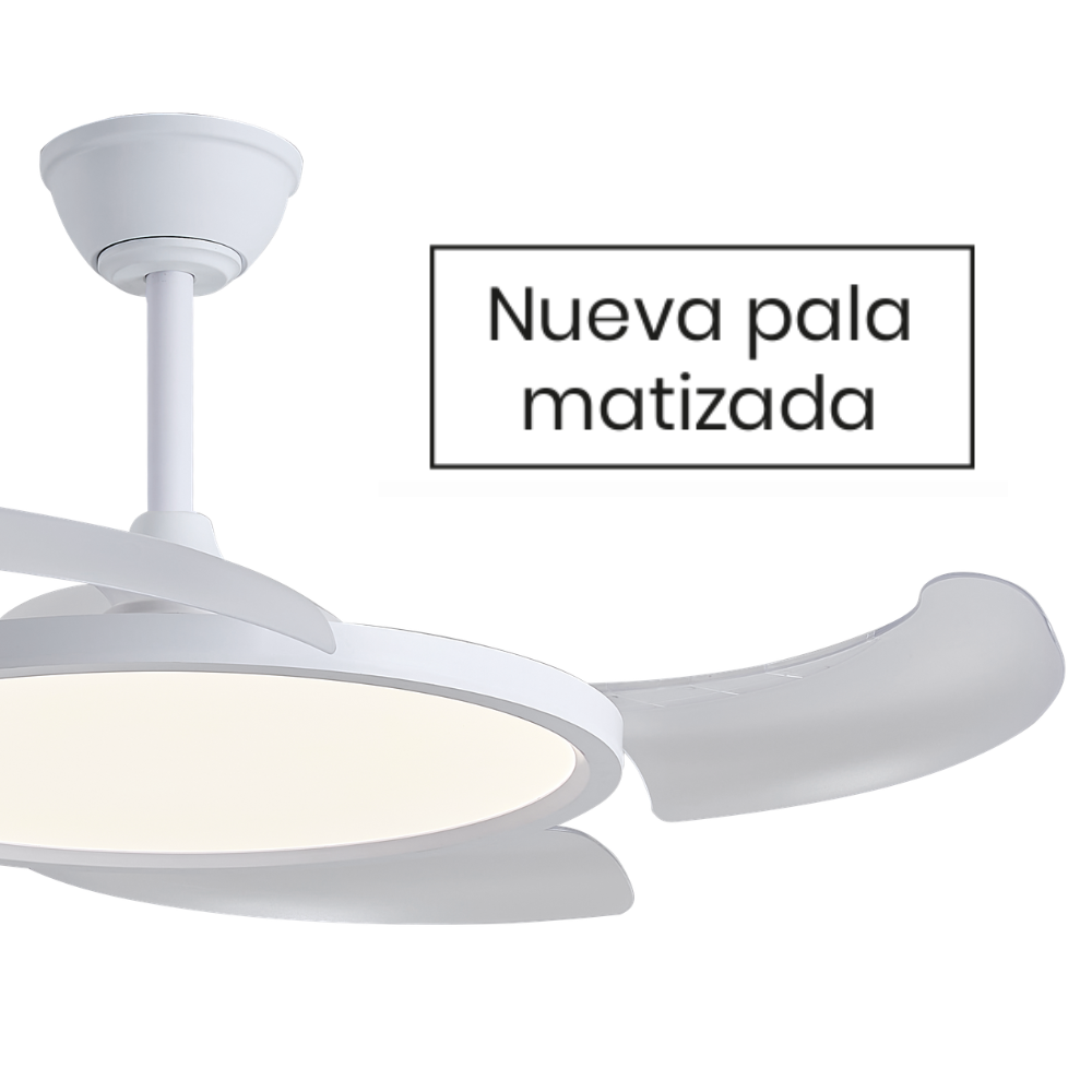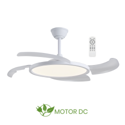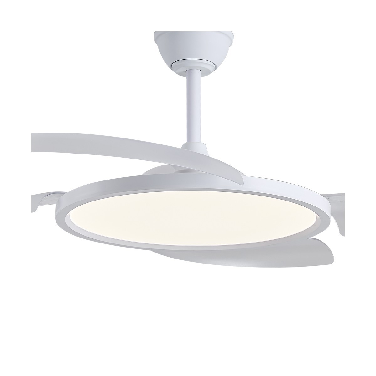 Ventilador de techo LED con aspas retráctiles Key blanco 43W 4430lm 3CCT regulable con mando a distancia. Silencioso y moderno.
