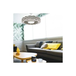 Si combinamos diseño, originalidad y funcionalidad nos da como resultado el ventilador modelo Slice. Es la opción perfecta para instalar en estancias de 10 -15m². Su estructura esta realizada en ABS acabado blanco. Difusor en acrílico blanco. No tiene aspas visibles ya que su estructura gira generando el flujo de aire. Slice tiene un consumo led de 36w (1900lm). Su motor es DC ultrasilencioso. Incluye mando a distancia y desde él podremos elegir la tonalidad de luz que deseemos desde 3000k (luz cálida) 4500k (luz neutra) o 6500k (luz fría). Incluye temporizador 1-3-6-9h, memoria de encendido, función brisa y sensor de temperatura Ifeel. Tiene 6 velocidades. CONSUMO (W): 10.7-14.5 -21.1-25.2-41.1-64.3w RPM:90-120-155-170-210- 250 NIVEL DE SONIDO (DB):16-19-21-23-29-32. FLUJO DEL AIRE (M³/H): 55-70-90-100-120-140 .Su peso es de 13 Kg. Incluye 2 tijas de 12 y 20cm para poder adaptar la altura del ventilador. Opción de instalar en techo sin tija. Apto para instalar en techos inclinados con una inclinación menor a 25º. Disponible en un tamaño inferior.
